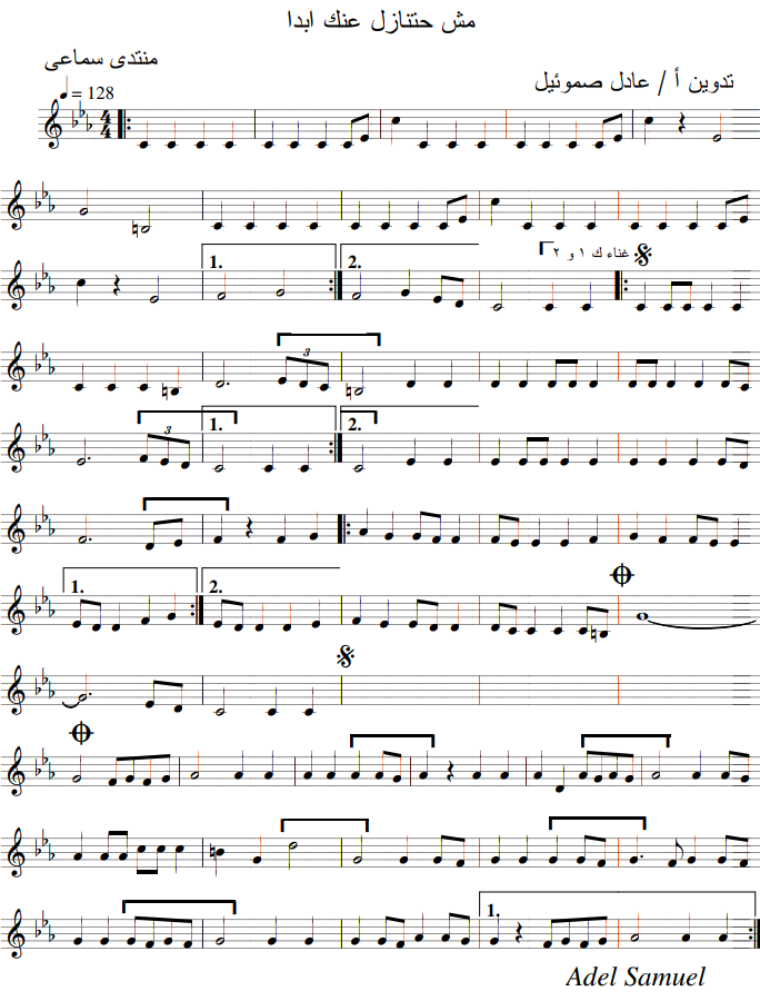 نـــوته مـــوسيقيه ســـميرة ســـعيد مـــش هـــتنازل عـــنك مـــع كـــلمات اغـــنيه كـــامله تـــدوين ا عـــادل صـــاموئيل
