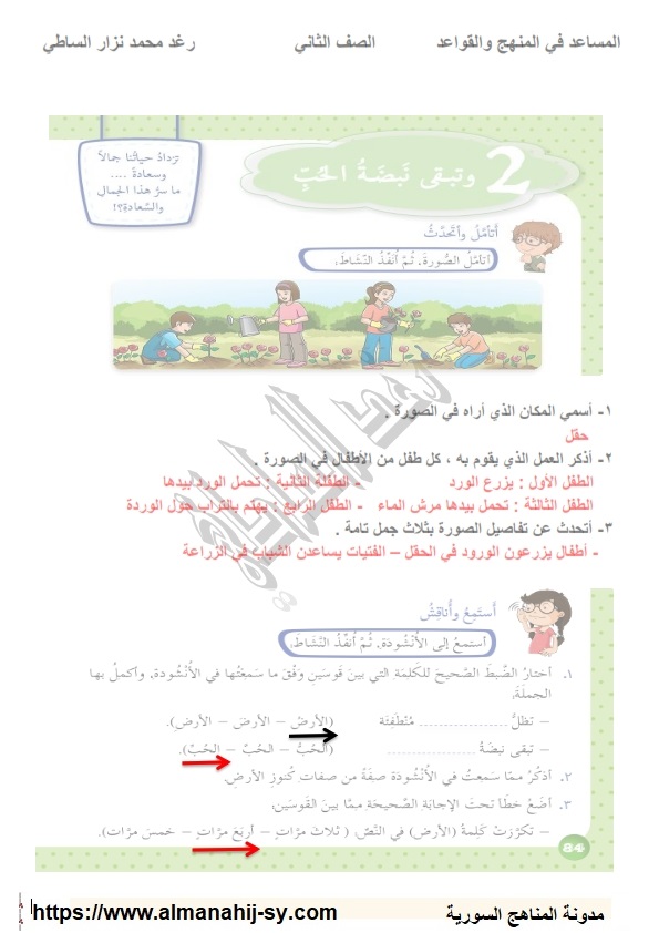 حل كتاب العربية لغتي للصف الثاني الأساسي في سوريا ـ المنهاج الجديد مكتبة الفريد الإلكترونية