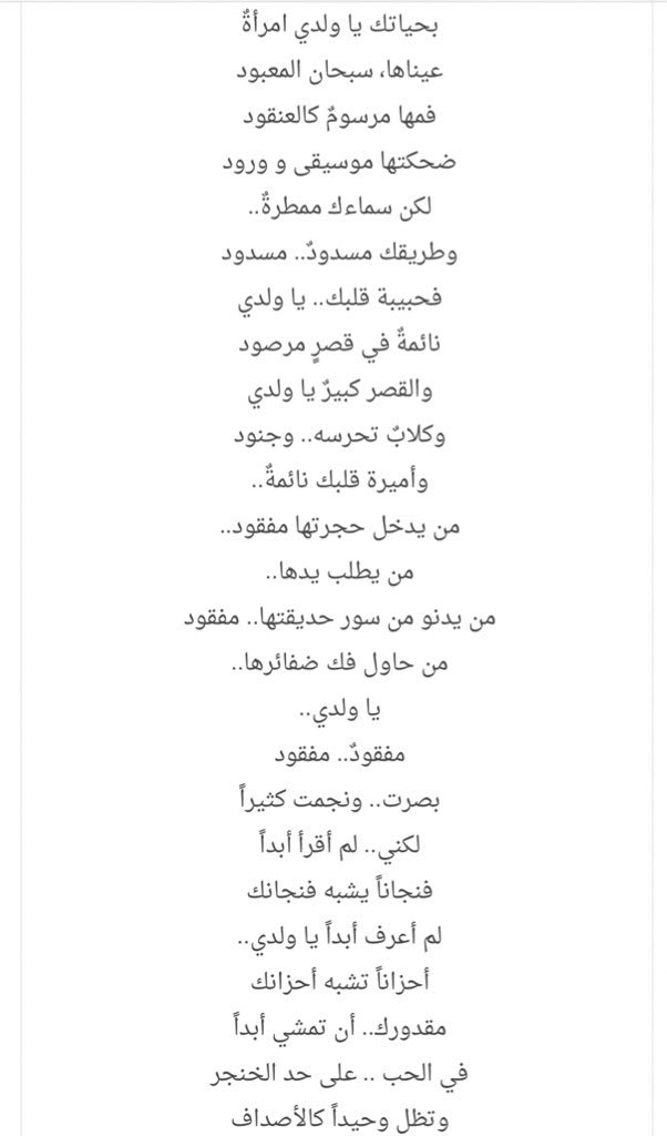 شعر نزار قباني بحياتك يا ولدي امرأة عالم الأدب