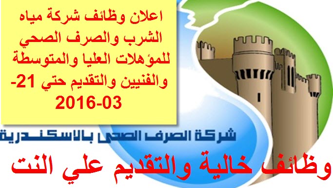 اعلان وظائف شركة مياة الشرب والصرف الصحي للمؤهلات العليا والمتوسطة والتقديم علي النت اونلاين منشور بتاريخ 08 03 2016