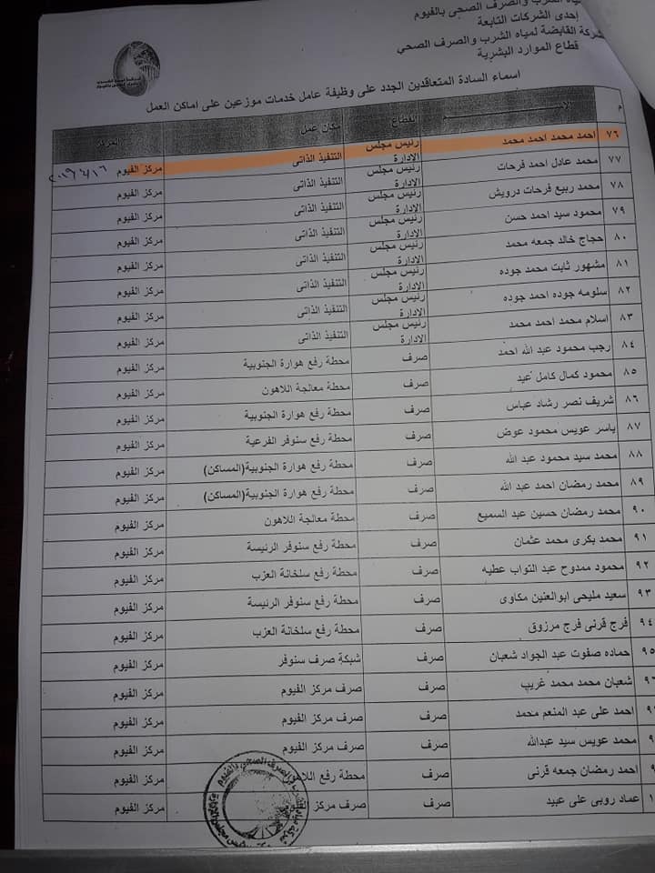 اسماء المقبولين بمسابقه شركة مياه الشرب الفيوم من أرض الواقع فيسبوك